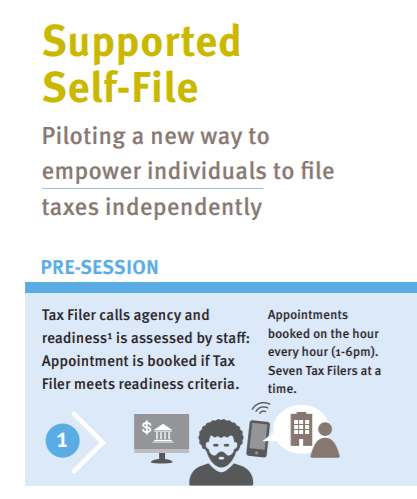 WoodGreen Community Services, a large multi-service frontline social service agency in Toronto, provides free tax preparation services year-round to people living on low incomes. WoodGreen was interested in designing a novel solution to address the tax filing needs of people who are interested in and capable of filing their own taxes.