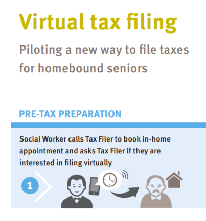 WoodGreen Community Services, a large multi-service frontline social service agency in Toronto, provides free tax preparation services year-round to people living on low incomes. WoodGreen was interested in designing a novel solution to address the tax filing needs of homebound seniors who are unable to access WoodGreen’s free in-person tax-preparation services due to physical or mental health challenges.