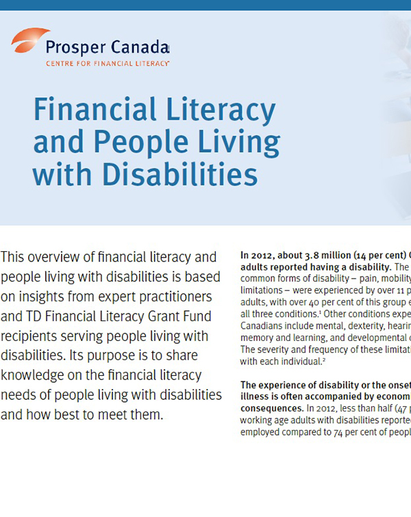 This brief overview of the financial literacy needs of people with disabilities was generated through consultations with experts in the field and insights shared by TD Financial Literacy Grant Fund recipients.