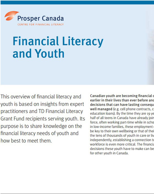 This brief overview of the financial literacy needs of youth was generated through consultations with experts in the field and insights shared by TD Financial Literacy Grant Fund recipients.