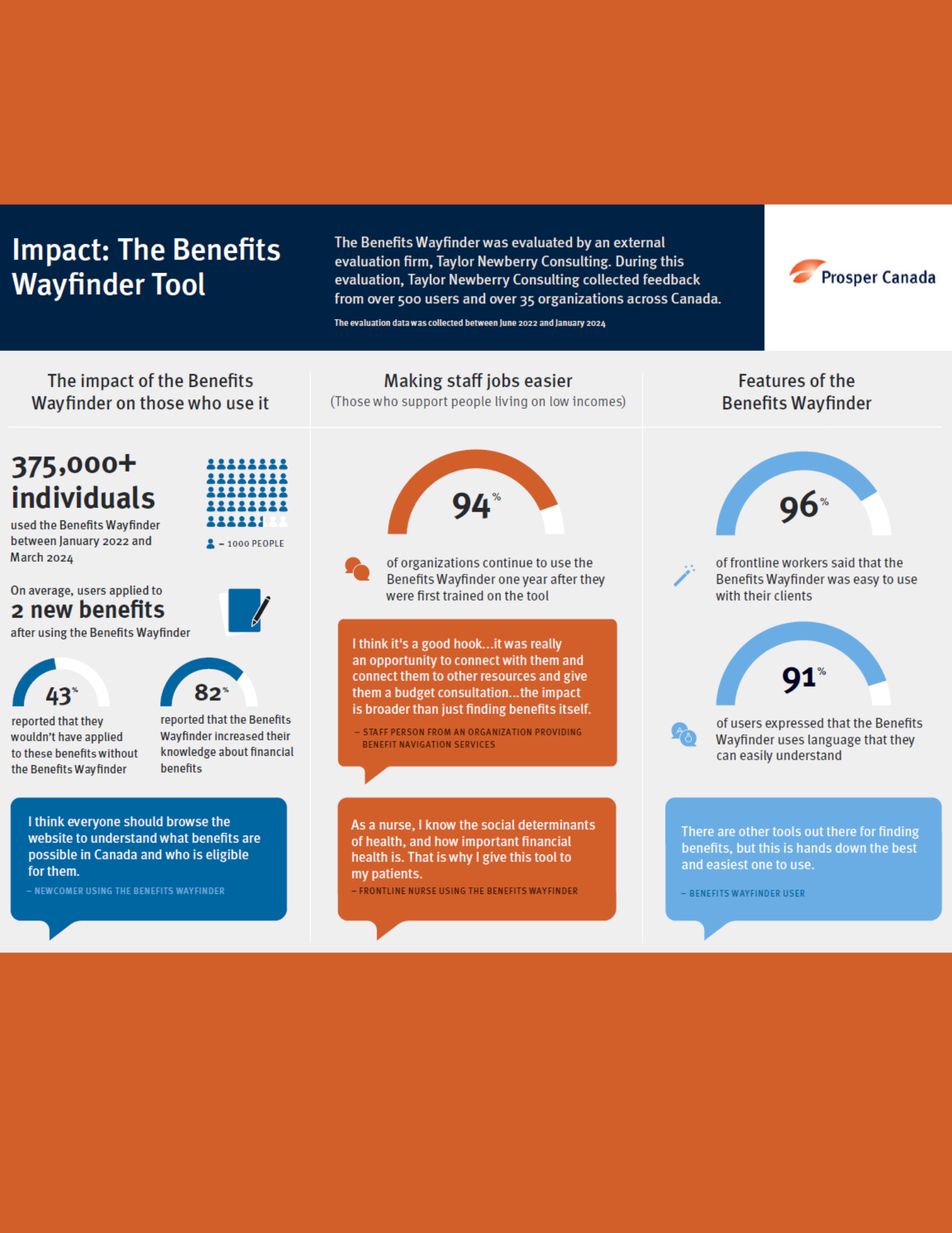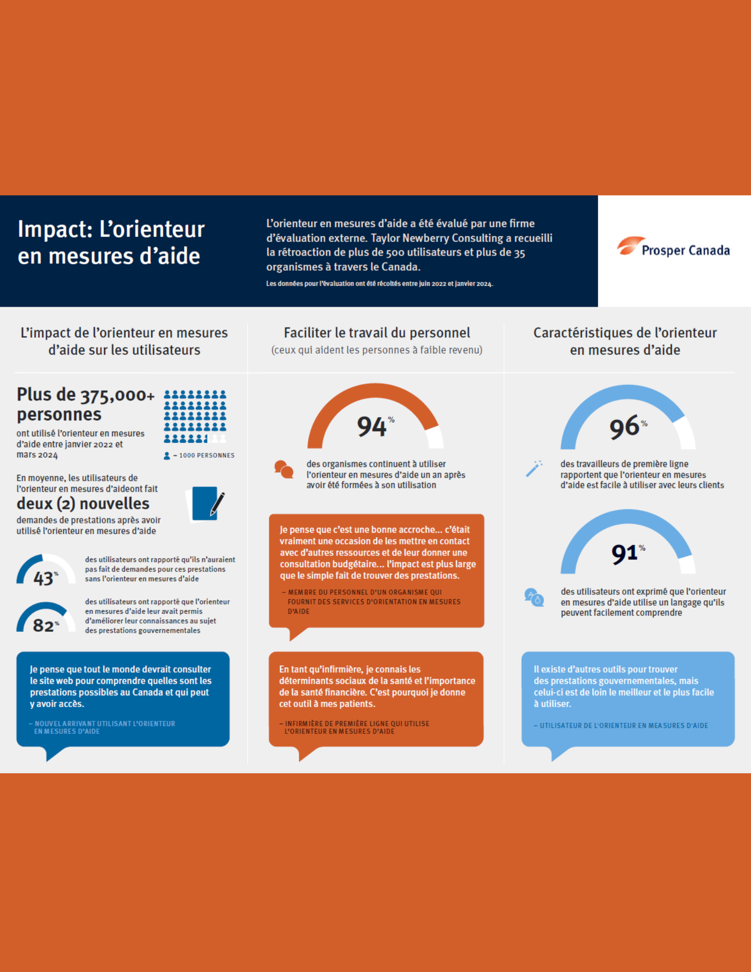The majority of our publications are provided in accessible formats. For publications that do not meet this requirement, an accessible format is available on request at info@prospercanada.org.