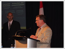 Casey Cosgrove, CCFL's Director, participating in Minister of Finance Jim Flaherty’s news conference on new credit card regulations.
